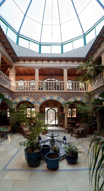 The villa is an Andalusia style house and has a total constructed surface of approx. 860m2 including:- Ground floor- First floor- Solarium- Semi-basement (garage and cellar)- Porch with kitchen and barbecue- Indoor poolPlot size: approx. 2017 m2 with direct access to spacious green areas.The villa is distributed in two floors with solarium and semi basement.Ground floor:Laundry areaKitchenLiving roomBig interior patio1 BedroomBathroomPool (with access from house and garden)First floor:4 on suite...