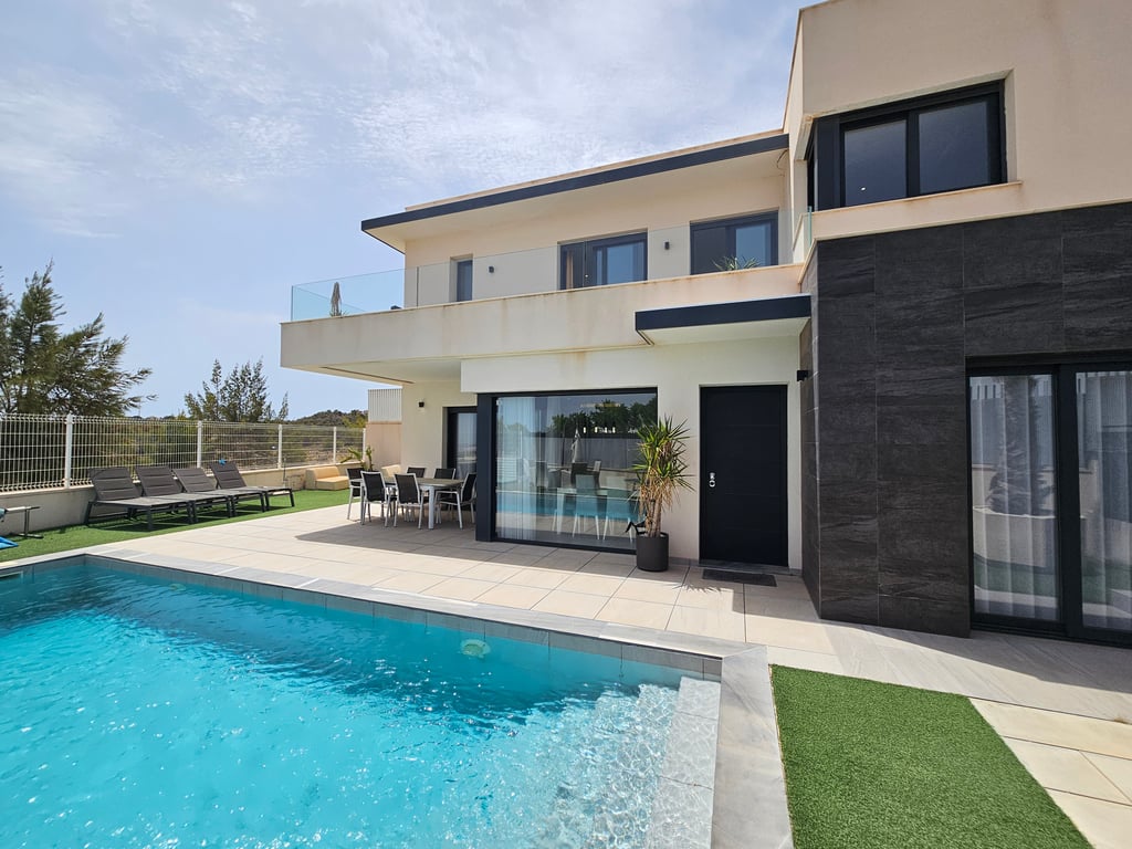 OFFER! Large Modern Villa with Private Pool in Villmartin/ San Miguel de Salinas. 3 bedrooms 3 bathooms Private Pool Off road parking Terrace Clear views A/C Furnished Built in 2019 this Villa sits on a prestigious and elevated corner plot, with spectacular views across the pink salt lake and pine forest and forms part of a peacefully neighbourhood between Villamartin and San Miguel de Salinas. The villa has a sunny orientation with a double driveway and parking area on one side of the property...