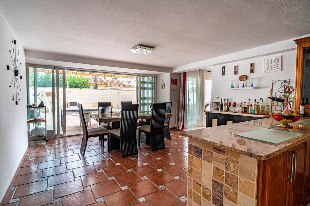 A 4 bed 4 bath detached villa with a private swimming pool located close to the Villamartin Plaza, Costa Blanca. This lovely property is all on one level, is offered for sale in good condition & very briefly consists of the following: - Large lounge with open fireplace with direct access to the garden, separate equipped kitchen with separate dining room, 4 x double bedrooms, 4 x bathrooms, garage with direct interior access to the property, large 1185m2 plot with a private swimming pool & ...
