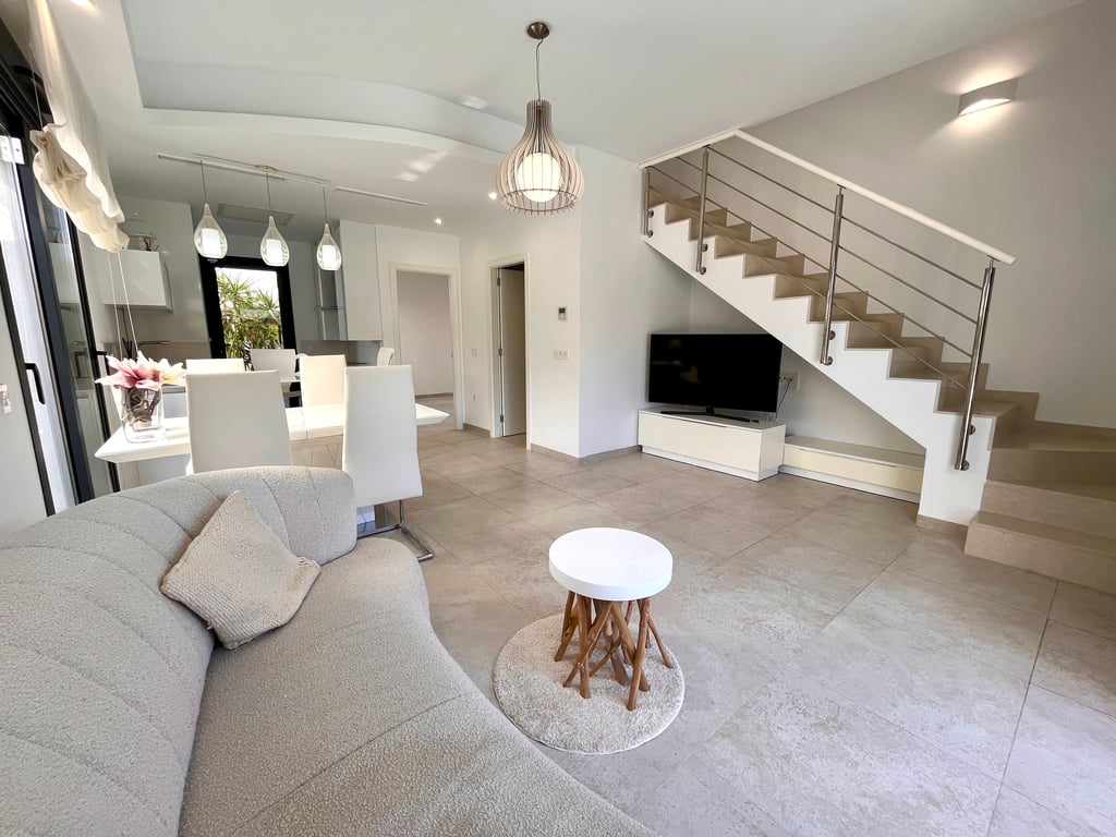 OFFER! Lux Modern Semi-Detached Villa with Private Pool in Playa Flamenca/ Villamartin. 3 bedrooms 3 bathrooms Private Pool 100m2 build West facing Off road parking Furnished This beautiful Semi-Detached is the perfect choice for those seeking a comfortable and functional home in a peaceful setting. With 90 m2 of living space and a private garden of 54 m2, this property offers the ideal space to enjoy outdoor living and make the most of the Mediterranean climate. A standout feature is the priva...