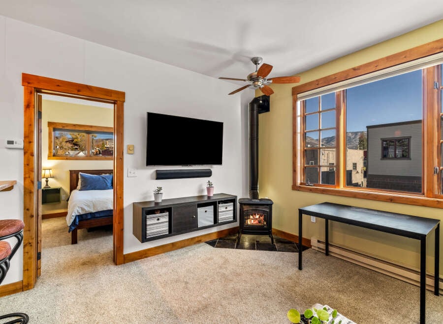 Introducing this one-bedroom, one-bathroom condominium in downtown Steamboat Springs, ideally located for convenient access to ski slopes, Howelsen Hill, mountain biking trails, and a wide range of recreational activities. Alongside the scenic Yampa River, the residence offers immediate proximity to peaceful parks, premier restaurants, shopping venues, art museums and local grocery markets. This top-floor corner unit is filled with natural light, features an open-concept layout and a charming ea...
