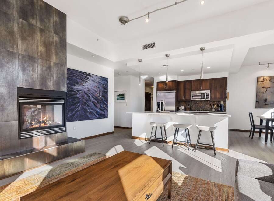 Experience the ultimate in downtown living in this impeccably designed residence at Howelsen Place. Perfectly situated in the vibrant heart of Steamboat Springs, this 2-bed, 2-bath condo offers a sophisticated blend of industrial-chic design and modern luxury. Its gorgeous interior is defined by high ceilings and expansive floor-to-ceiling windows that flood the rooms with natural light while framing panoramic views of the Steamboat Ski Area. Elevated updates included LVP flooring in the main li...