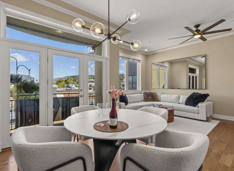 Welcome to a truly one-of-a-kind residence at the sought-after Mears House Condos in Durango, CO. This fully furnished, penthouse-style condo offers luxury, convenience, and privacy—complete with your own private elevator entrance directly into the unit. Inside, the home is bright and airy, filled with natural light that pours through expansive windows. With 2 spacious bedrooms, 2.5 baths, and a versatile flex space featuring fitted bunk beds, there’s plenty of room to host guests in comfort. Th...