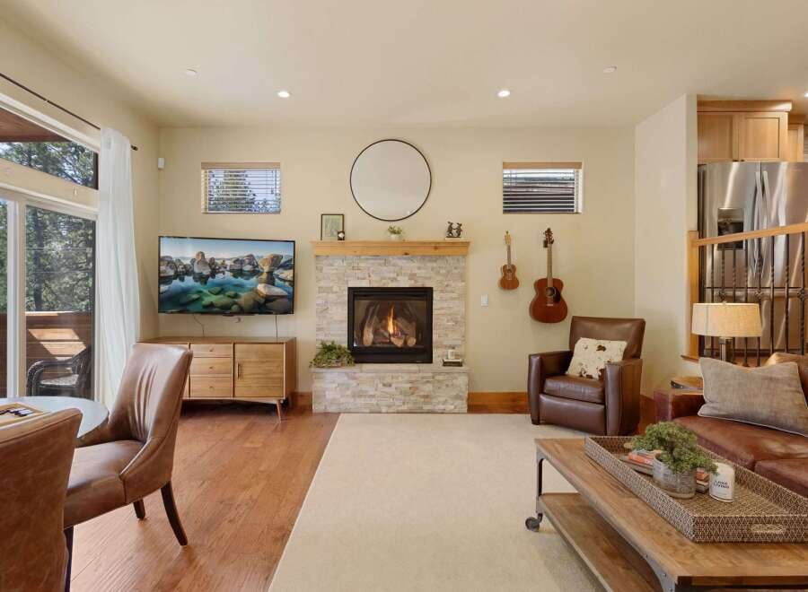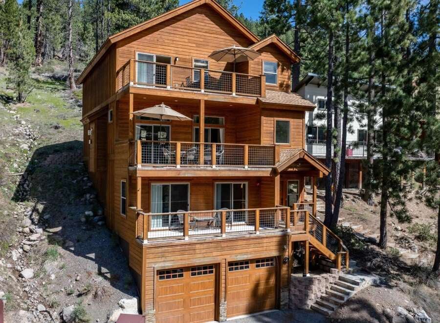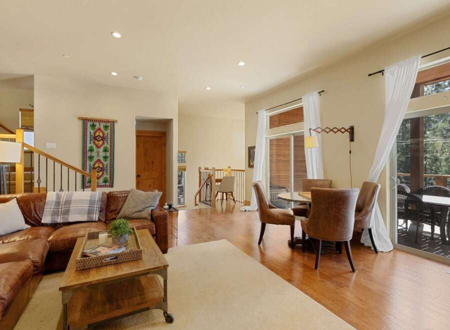 Just moments from Donner Lake, crystal-clear waters, and world-class skiing, this newer mountain retreat captures the essence of effortless Tahoe living. With scenic lake views, the home showcases a thoughtfully refined design featuring hickory wood floors, alder cabinetry, granite countertops, and a striking stone hearth with a gas fireplace.The main level showcases an open-concept great room with soaring ceilings, abundant natural light, and a well-appointed kitchen that flows seamlessly onto ...