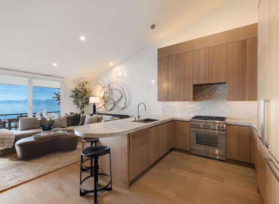 Exquisite lakefront condo, recently remodeled with panoramic lake views and steps to the water. Enjoy the private sandy beach, marina and buoy field, with slips and moorings available through the HOA. Custom finishes throughout featuring Rift White Oak cabinetry and trim, limestone fireplace and hearth, quartzite countertops, light fixtures and automatic window shades. All new Thermador appliances and beverage drawer, new furnace and air conditioning. Spacious primary suite with walk-in closest,...