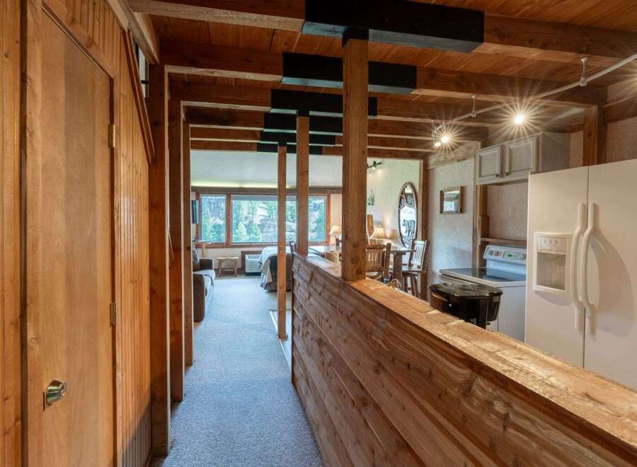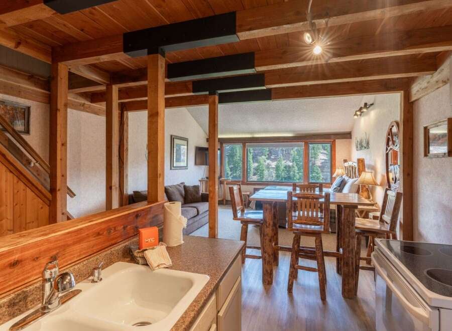 END UNIT THAT COMFORTABLY SLEEPS 6!! Located in the Lodge at Tamarron, this unit feels like a cabin once your inside with the wood beams, mountain decor and 5th floor views of the golf course and mountain cliffs. The kitchen offers full size appliances, laminate flooring and an open floor plan to the dining and living areas. In the living area, the space encompasses a pull out queen size sofa bed, log style dining table and seating for 4, queen size log bed, mounted TV and amazing views. The lof...