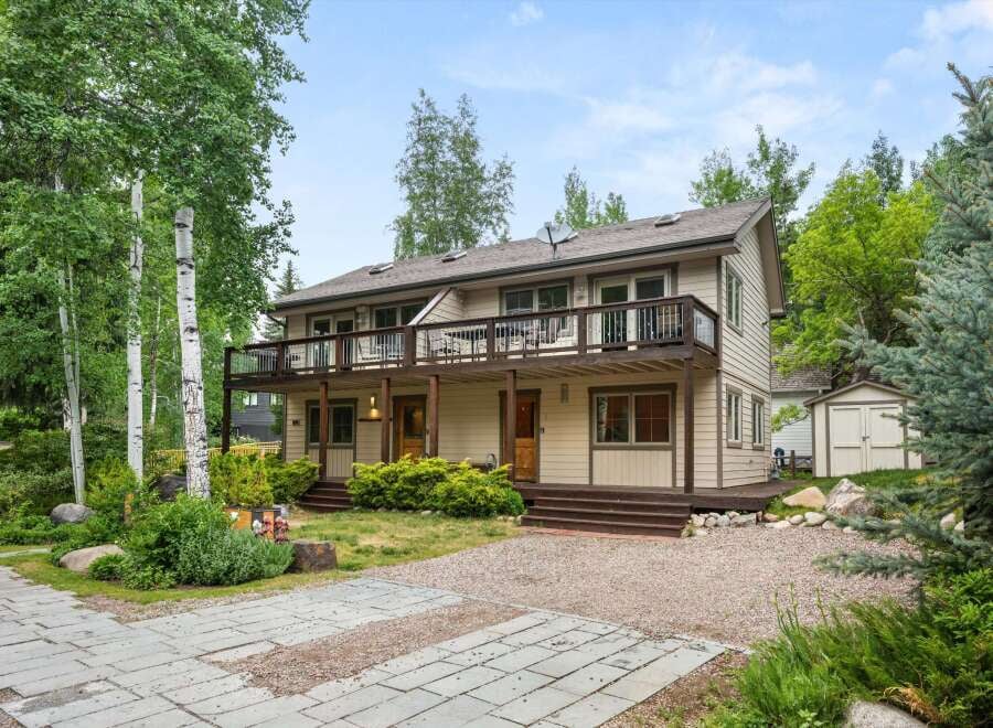 This Park Avenue duplex offers soaring views of Aspen Mountain and the privacy of a quiet neighborhood just across the Hopkins pedestrian bridge with easy walking access to the downtown core. Sale includes both separately deeded condominium units 1 & 2, each over 1,250 square feet totaling 2,506 square feet. Patio level common wraparound deck, second level private decks for each unit, storage shed, off street parking, landscaping with irrigation, & alarm system. Currently Unit 1 is a 3BR 2.5BA s...
