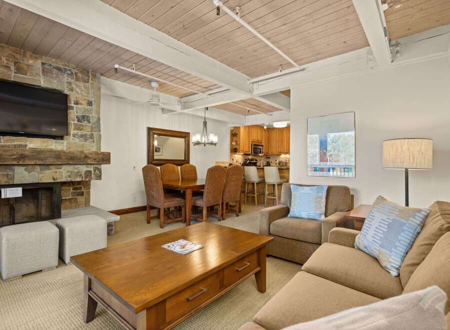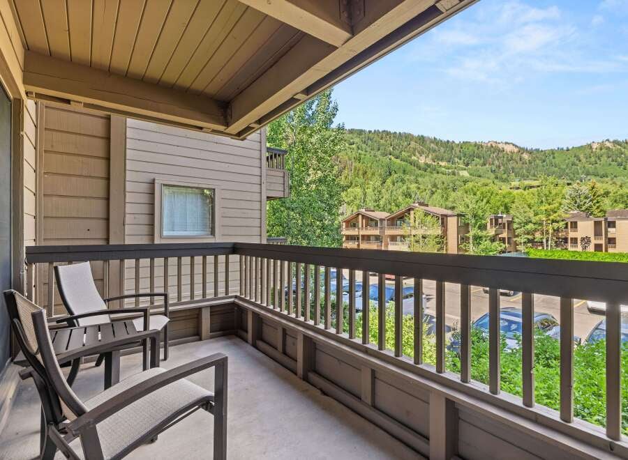 Ideally situated near the core of downtown Aspen, Gant H-202 is a nicely updated second-floor residence in a quiet setting near the east pool area. Enjoy southwest-facing views of Shadow Mountain and the Silver Queen Gondola as it climbs Little Nell, all from a private walk-out, covered deck overlooking the tennis courts. H202 has an open concept living area that centers around the fireplace, scheduled to be upgraded to an electric model in the Fall of 2025. The kitchen features solid slab grani...