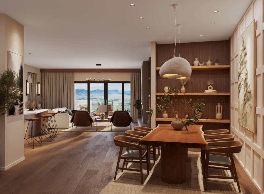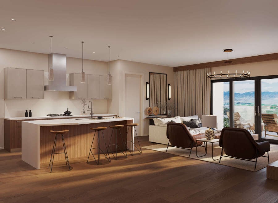 Welcome to Residence #407 at The Peak, a rare new construction luxury development less than a mile from Heavenly Ski Resort. This stunning mountain modern penthouse features 2,107 interior square feet, up to 14' vaulted ceilings, and an airy open concept design. Step out onto one of two private balconies and be captivated by panoramic alpine views of Carson Valley. The kitchen is an entertainer’s dream, featuring luxury Miele appliances, a large island with seating, six-burner stove, walk-in pan...
