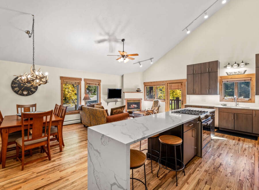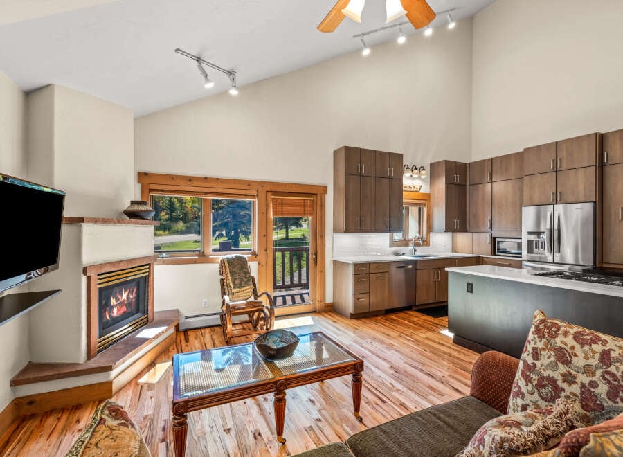 Highly sought after Saddle Creek Townhome with fresh paint, new carpet, and a fully renovated kitchen. This 3-bedroom, 3-bath residence offers an ideal layout with two bedrooms on the ground level and the primary suite on the main floor. The open living area is highlighted by vaulted ceilings, a gas fireplace, and access to two spacious decks—perfect for taking in the quiet surroundings and direct views of the Steamboat Ski Area. The oversized two-car garage provides generous storage for all you...