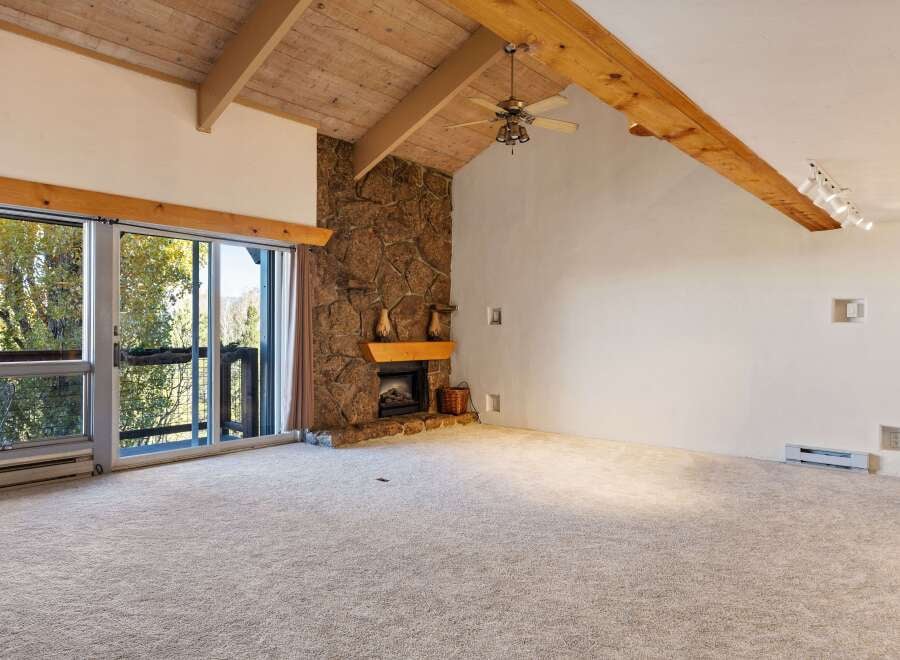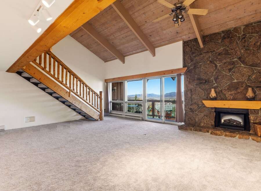 The LOWEST price per square foot of any condo in Steamboat Springs! Watch sunsets, fireworks, and city lights from this top-floor, 2 bedroom Fish Creek Falls Condo, thoughtfully updated and move-in ready. The main living area features vaulted ceilings that fill the space with natural light and frame stunning west-facing views of Sleeping Giant, Downtown Steamboat, and Howelsen Hill. The open-concept layout seamlessly connects the living, dining, and kitchen areas, perfect for relaxing or enterta...