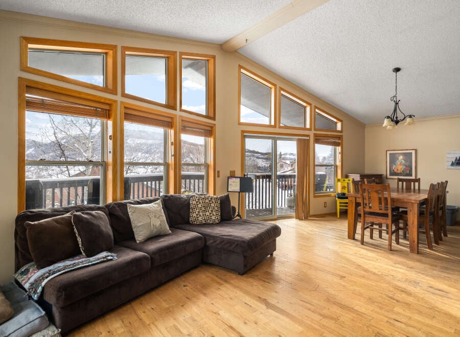 Sweat Equity Alert! Ideally located between downtown and the ski area, 568 Tamarack Drive offers expansive views, exceptional versatility, and a generous .62-acre lot that captures the best of Steamboat living. The property is thoughtfully designed with a 3 bedroom, 2 bath primary residence complemented by an attached 2 bedroom, 1 bath apartment, creating flexible options for ownership, rental income, or multigenerational living.The main living space features vaulted ceilings, floor-to-ceiling w...