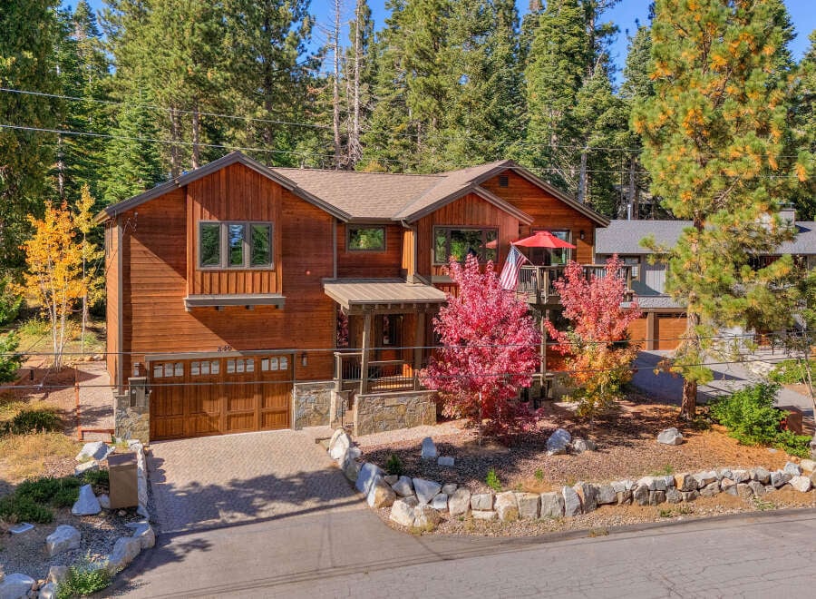 Nestled in the coveted community of Talmont Estates on Lake Tahoe's West Shore, this refined Tahoe residence blends elevated mountain architecture with the ultimate in modern comfort. The location allows for access to some of the region’s most iconic outdoor experiences. Perfectly positioned near major trailheads, it’s a gateway to Tahoe’s endless recreation while offering the privacy and serenity of a forested setting. Step inside to a dramatic great room crowned with soaring ceilings, anchored...