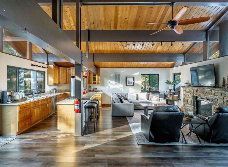 Skip the headaches of resort parking and enjoy the ease of the on-call Northstar shuttle to the mountain and amenities. Ideally located just minutes from the Village at Northstar, this beautifully remodeled 4- bedroom, 2-bath home offers exceptional flexibility for full-time living or the perfect Tahoe retreat.The spacious great room features an open, inviting layout designed for gathering and entertaining, flowing seamlessly into the updated kitchen with granite countertops, high-end appliances...