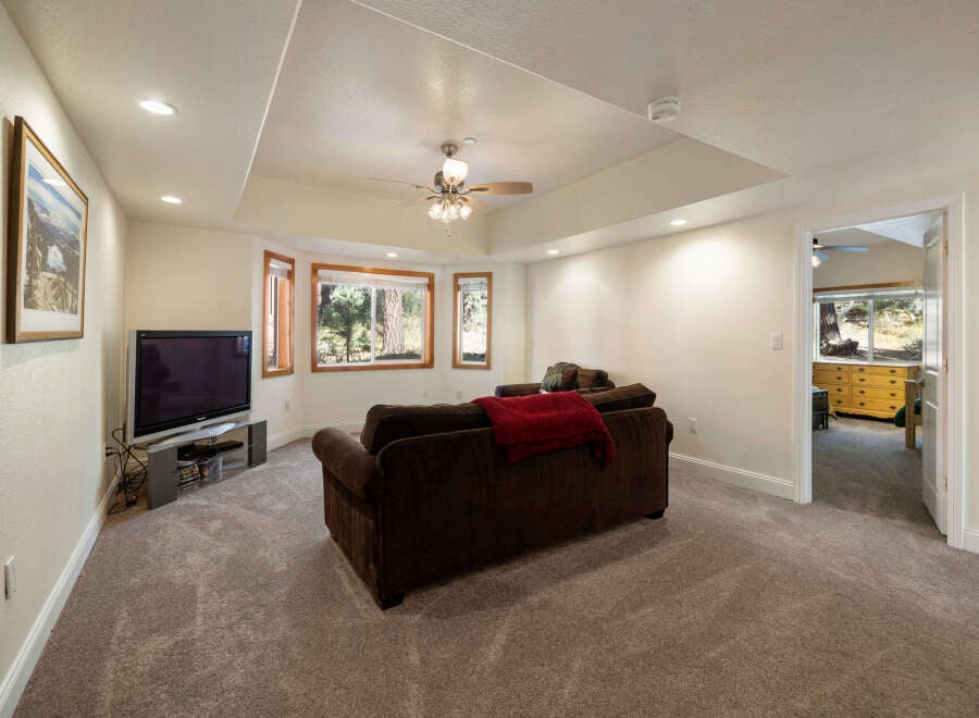 The Forest Glenn Lodge is a spacious mountain retreat perfectly positioned between the crystal shores of Lake Tahoe and the world-class slopes of Northstar California Resort. Designed for connection and comfort, this 5-bedroom, 3-bath home offers generous spaces for large groups or multiple families to gather and unwind. The sunlit great room welcomes you with vaulted ceilings, natural wood accents, and a wall of west-facing windows that frame the forest beyond. Step onto the expansive front dec...